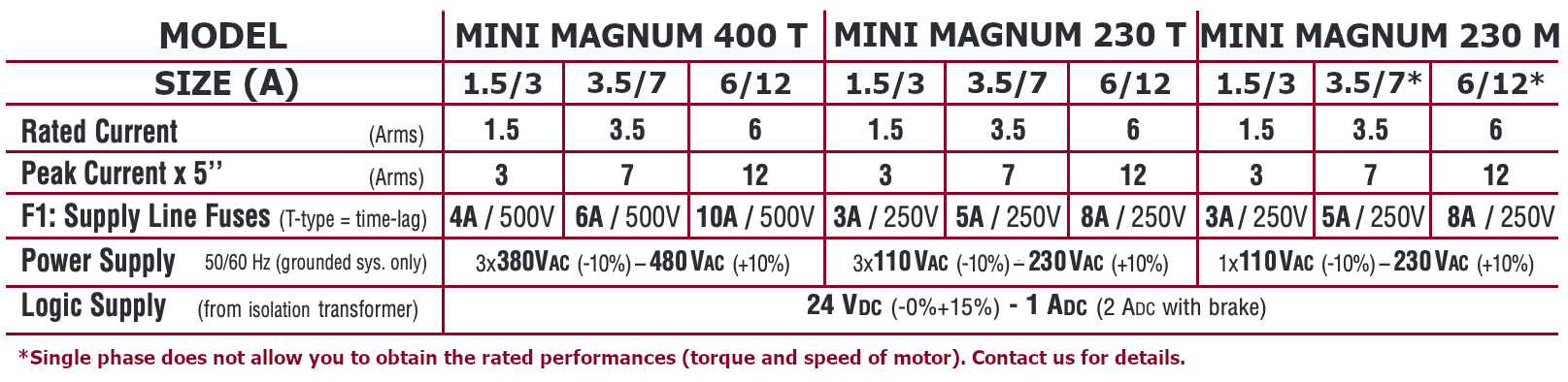 The fully digital Mini Magnum compact servodrive from Axor Industries measures just 66 wide x 201 high x 141deep (all in mm) and weights 1.75kg. The Axor Mini Magnum servodrives are suitable for driving AC brushless servomotors with encoder or resolver feedback. These units can operate directly on a single or three phase mains power supply ranging from 110 – 480V AC, depending on the type: