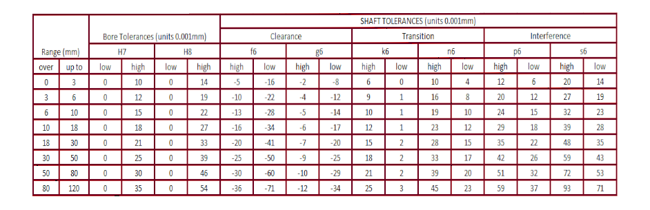 Bore and shaft tolerances