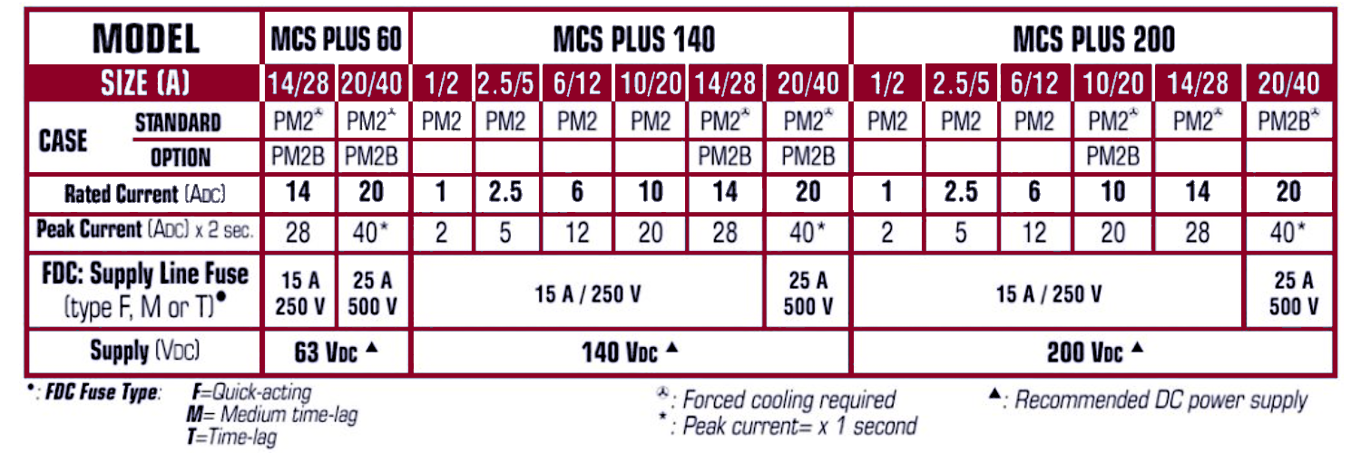 Power supply from 60 to 200 VDC with output current up to 20 Amps continuous / 40 Amps peak. Tacho-generator, armature, current mode and encoder feedback can be specified.