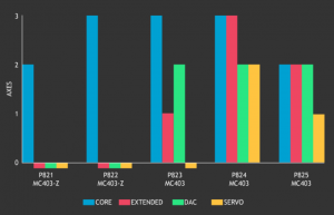 The MC403 is available in 2 model formats offering 5 different axis configurations. The entry level MC403-Z does not have a built-in DAC, whereas the MC403 DAC can be used as a general purpose analogue output or for servo control where available.