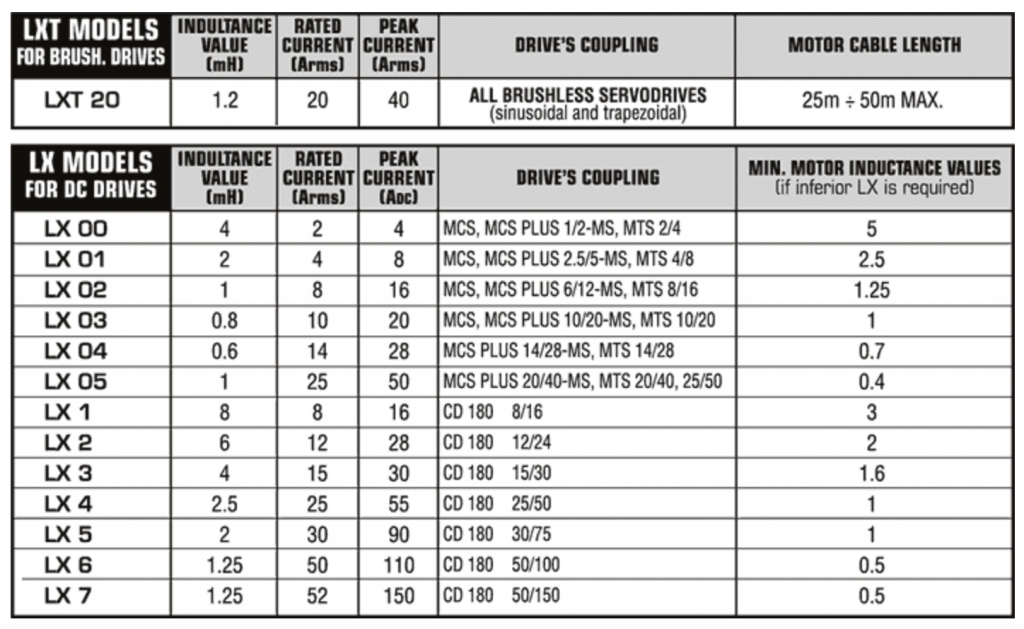 LX: Chokes line specifically designed to be coupled with Axor’s Dc Brushed Servodrives (to compensate for insufficient internal inductance avoiding motor over-heating). Continuos current range up to 52 Arms